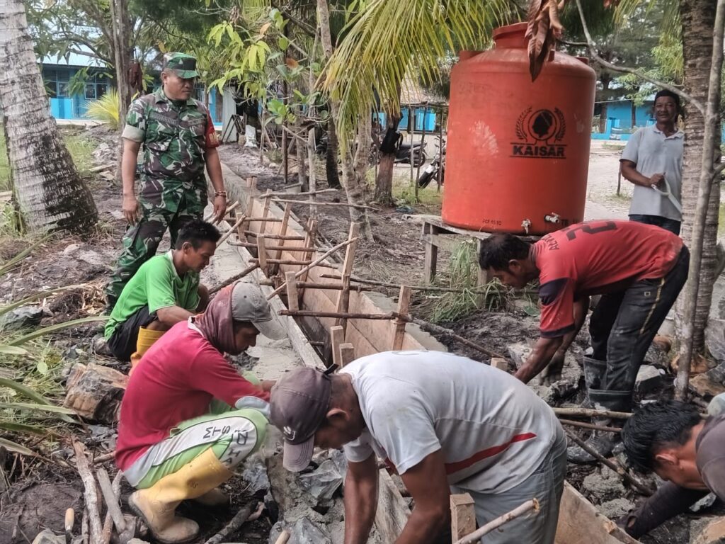 NATUNA – Babinsa Koramil 06/Serasan, Sertu Suwarno melaksanakan kegiatan Komsos sekaligus pengawasan terhadap proses pembangunan drainase yg menggunakan anggaran dana desa sesuai dengan RAPD thn 2024. didesa Pangkalan Kecamatan Serasan.