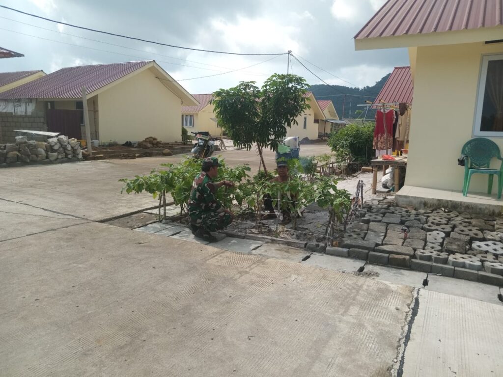 NATUNA – Babinsa Koramil 06/Serasan, Sertu Suwarno melaksanakan kegiatan komsos bersama warga binaan yang sedang membersihkan kebun disamping rumah huntap, Desa Pangkalan, Kecamatan Serasan. Minggu, (12/01).