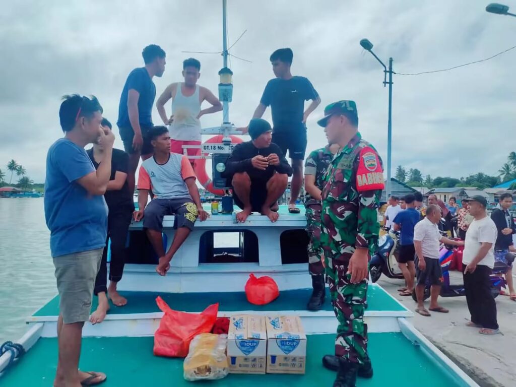 NATUNA – Babinsa Koramil 06/Serasan, Pos Ramil Subi, Serka Saroji beserta 2 anggota Babinsa lainnya melaksanakan kegiatan pembinaan teritorial/komunikasi terkait dengan kegiatan warga Desa Subi yang sedang melakukan pengambilan sembako di kapal.