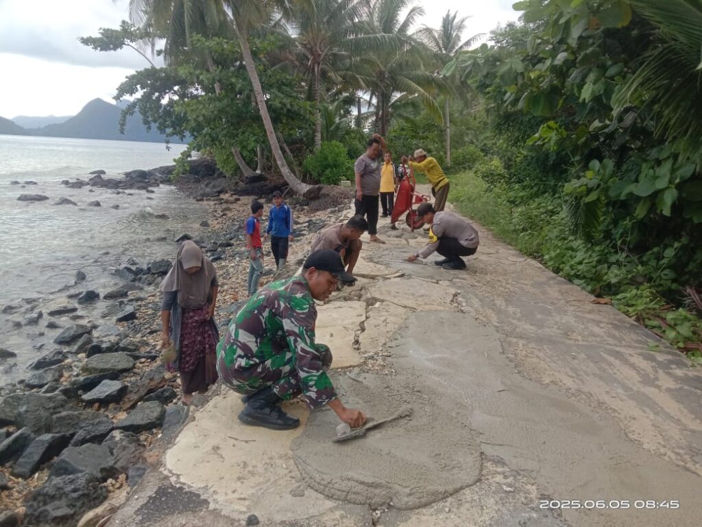 NATUNA – Babinsa Koramil 03/Sedanau, Koptu Suwarno melaksanakan giat Gotong Royong (Goro) bersama masyarakat memperbaiki Jalan poros Desa Setumuk, Kecamatan Pulau Tiga Barat yang berlubang. Kamis, (05/06).