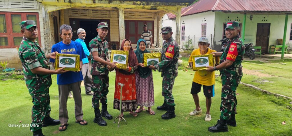 Sambut HUT Kodam I/BB Ke-75, Koramil 06/Serasan Salurkan 12 Paket Sembako Bagi Warga Kurang Mampu