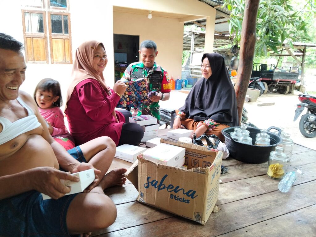NATUNA – Babinsa Koramil 06/Serasan, Kopda Hafit Heriadi melaksanakan kegiatan komsos bersama warga binaan Desa Pulau Panjang, Kecamatan Pulau Panjang yang berprofesi sebagai pedagang pakaian keliling. Sabtu, (21/06).