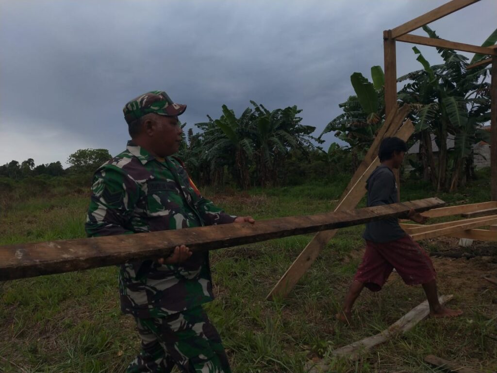 Babinsa, yang merupakan unsur pembina teritorial di tingkat desa, turut serta dalam berbagai kegiatan sosial, termasuk membantu warga membangun tempat berteduh di kebun mereka.