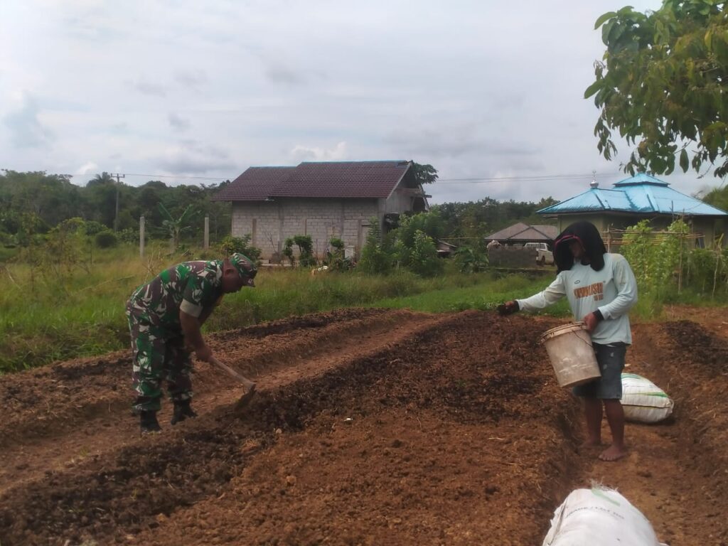 NATUNA – Koramil di berbagai daerah secara rutin membantu petani, termasuk dalam kegiatan pemupukan dengan pupuk kompos.