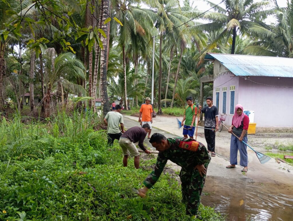 Babinsa Sertu Robby mengatakan, Babinsa (Bintara Pembina Desa) secara rutin melakukan kegiatan gotong royong bersama masyarakat di wilayah binaan.