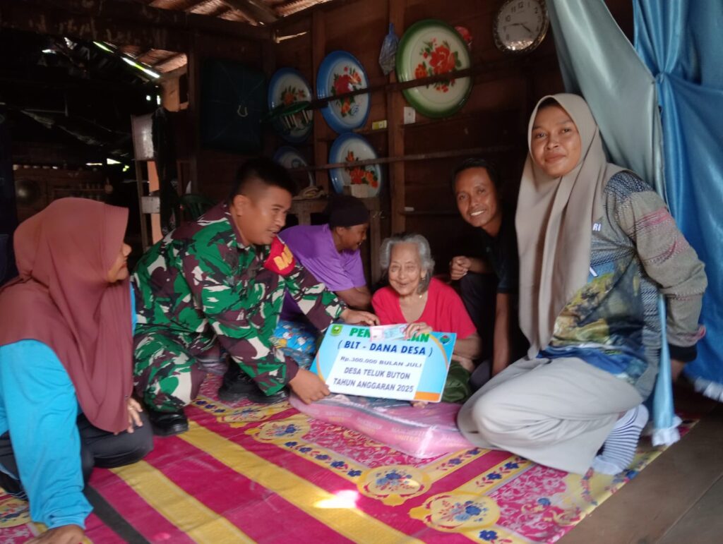 NATUNA – Babinsa Serda H Nainggolan, dari satuan personil Koramil 03/Sedanau mendampingi langsung penyaluran BLT DD Desa Telok Buton ke rumah warga penerima manfaat. Jum’at, (17/07)