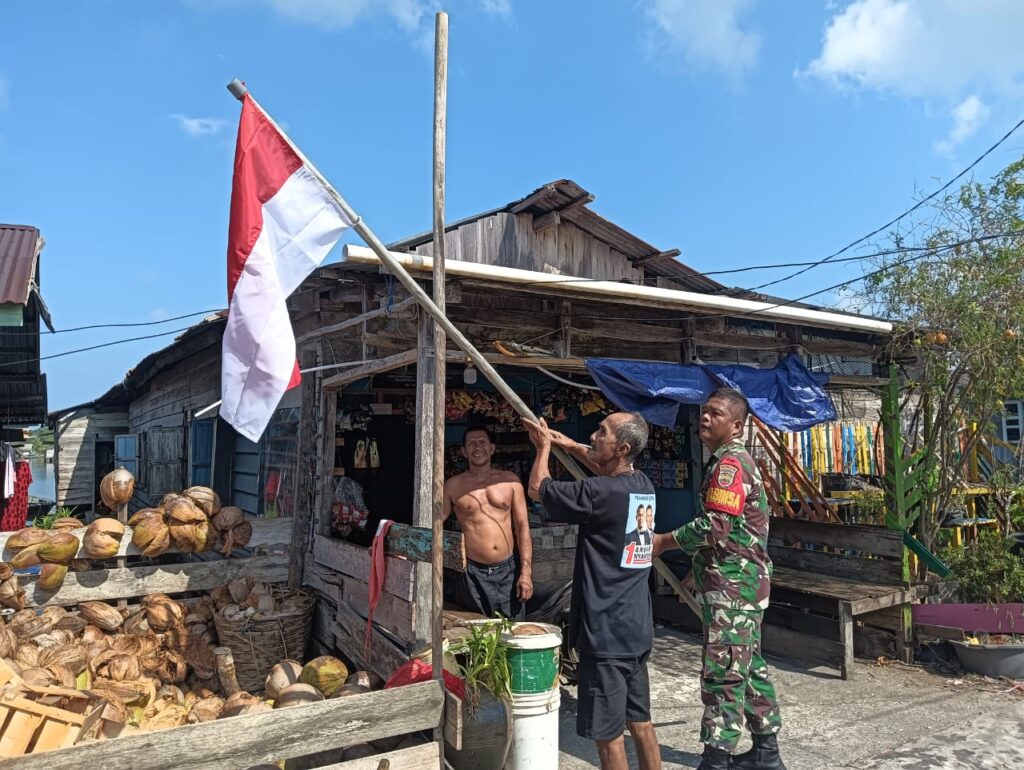 NATUNA – Dalam rangka menyambut Hari Kemerdekaan Republik Indonesia Ke-80, Babinsa Sertu Jimson Pangaribuan, dari satuan personil Koramil 03/Sedanau keliling wilayah memberi himbauan agar memasang bendera Merah Putih atau umbul.