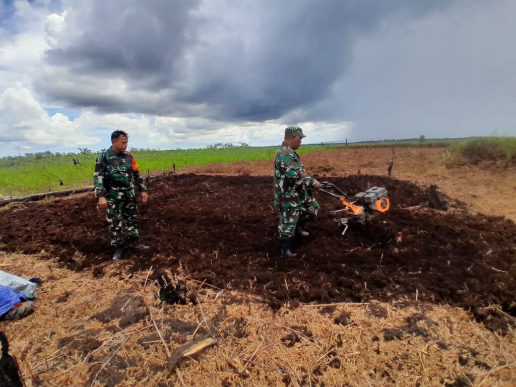 NATUNA – Babinsa Koramil 03/Sedanau, Serka Syaifullah Torang bersama kelompok tani Desa Gunung Putri, Kecamatan Bunguran Batubi melaksanakan pembajakan lahan guna ditanami padi Gogo. Rabu, (06/08).