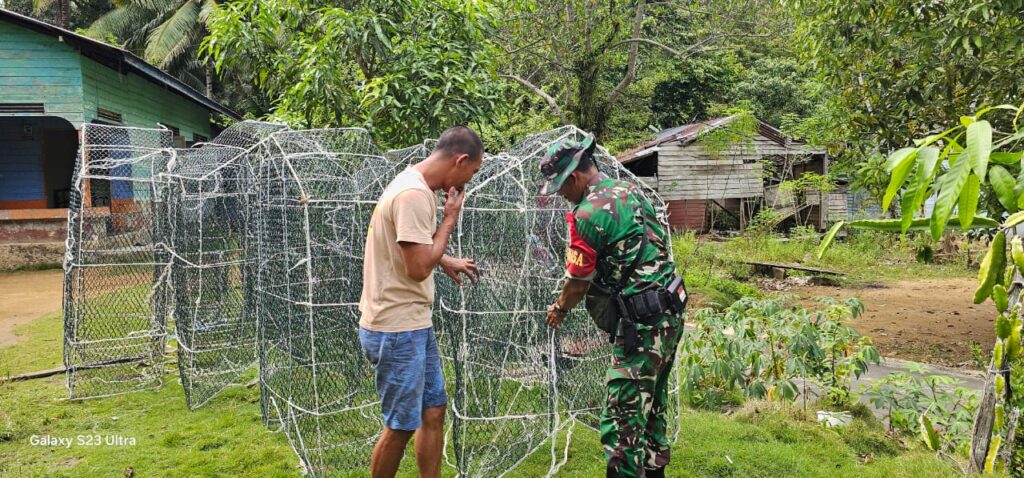 KUTIPAN – Babinsa Koramil 06/Serasan, Sertu Hendry Purwanto melaksanakan kegiatan Komsos membantu Warga mengikat tali bubu labuh saudara Karim Al Manaf. Minggu, (10/08).