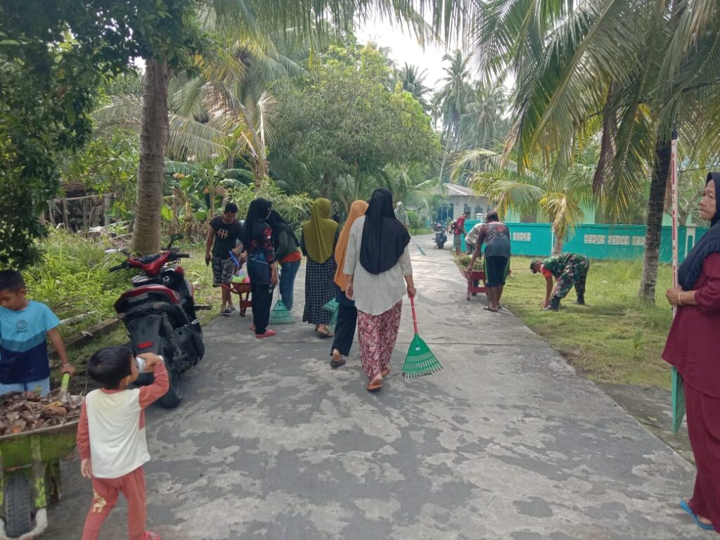 NATUNA – Babinsa Koramil 06/Serasan, pos Ramil Subi, Serka Saroji kembali mengikuti kegiatan Gotong Royong (Goro) jum’at bersih bersama warga binaan desa Subi Besar, Kecamatan Subi.