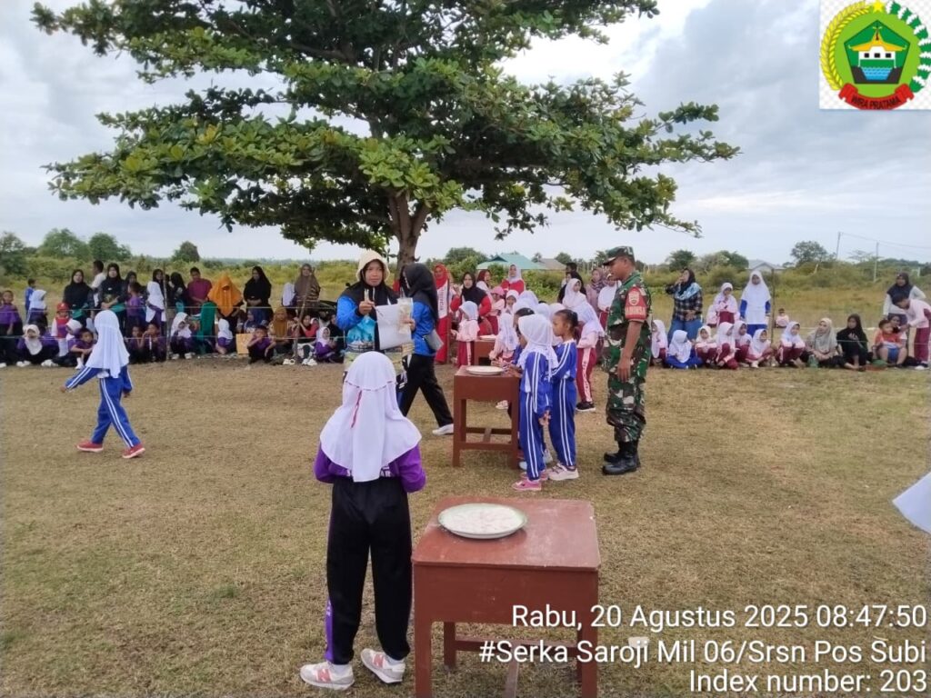 NATUNA – Babinsa Koramil 06/Serasan, Pos Subi Serka Saroji menghadiri kegiatan festival permainan rakyat dalam rangka memeriahkan HUT RI ke-80 tingkat Kecamatan Subi.