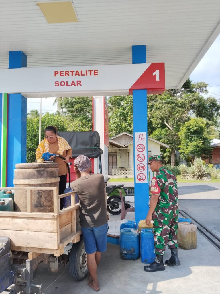 NATUNA – Babinsa Koramil 06/Serasan, Pos Ramil Subi, Serka Saroji melaksanakan kegiatan komsos dengan salah seorang nelayan yang sedang mengisi BBM solar untuk persiapan melaut.
