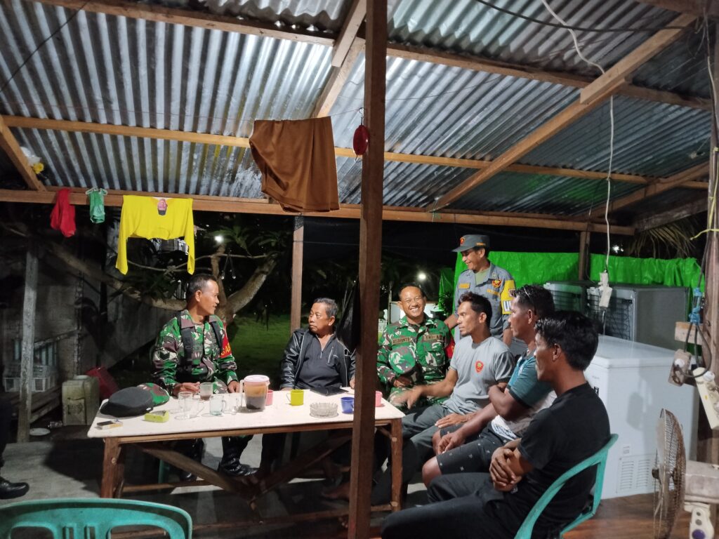 Di Kecamatan Subi, para personil Koramil 06/Serasan melaksanakan patroli rutin sekaligus sambang pos kamling. Kehadiran Babinsa mendapat sambutan hangat dari warga ronda yang sedang berjaga.