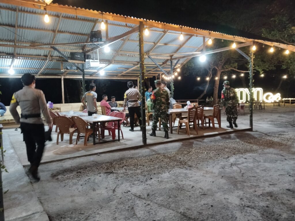 NATUNA – Anggota Babinsa Koramil 06/Serasan, Serka Saroji dan Serka Risdianto bersama Polsek melaksanakan patroli malam hari sembari memberikan himbauan Kamtibmas kepada warga masyarakat