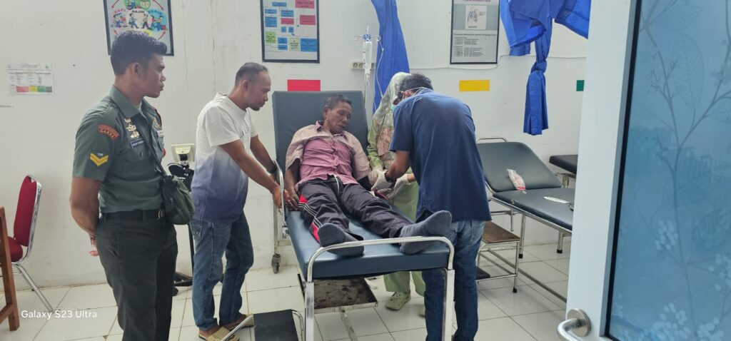 Babinsa Sertu Hendry Bantu Evakuasi Salah Seorang Warga Ke Puskesmas