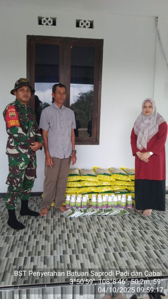 NATUNA – Babinsa Koramil 03/Sedanau, Kopda Yopi melaksanakan pendampingan penyaluran bantuan Sarana Produksi Pertanian (Saprodi) padi dan cabai bagi warga Desa Batubi Jaya, Kecamatan Bunguran Batubi. Sabtu, (04/10).