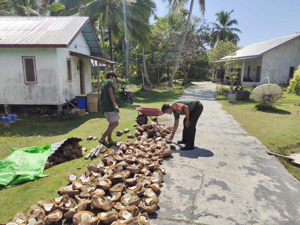 Tak sampai disitu, proses pengupasan sabut kelapa , membelah dan dan menjemur kelapa hingga menjadi Kopra yang nantinya akan di jual ke pada pengepul yang ada di wilayah Koramil 06/Serasan.