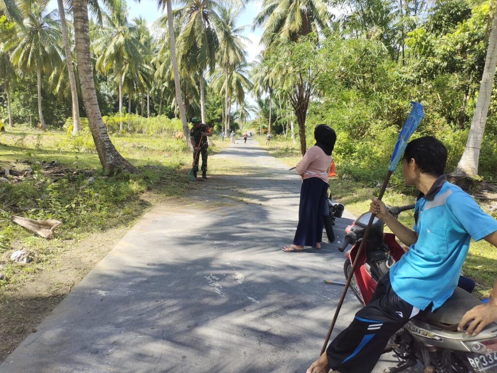 NATUNA – Babinsa koramil 06/Serasan, Pos Ramil Subi, Serka Risdianto melaksanakan kegiatan Jum’at bersih dengan bergotong royong bersama warga membersihkan kiri-kann jalan raya Desa Meliah, Kecamatan Subi. Jum’at, (21/11).