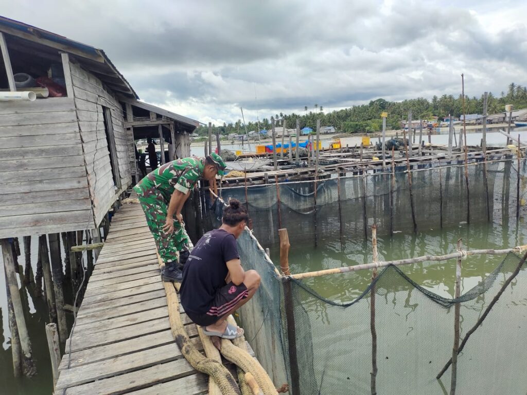 NATUNA – Personel Koramil 06/Serasan, pos Ramil Subi, Serka Risdianto melaksanakan kegiatan komsos bersama salah seorang pembudidaya keting laut di wilayah Desa Subi, Kecamatan Subi. Sabtu, (05/12).