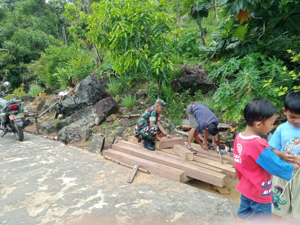 Tidak lupa Serda Dadang juga memberikan dukungan dan motivasi kepada pekerja agar tetap semangat, berhati-hati, dan menjaga kekompakan.