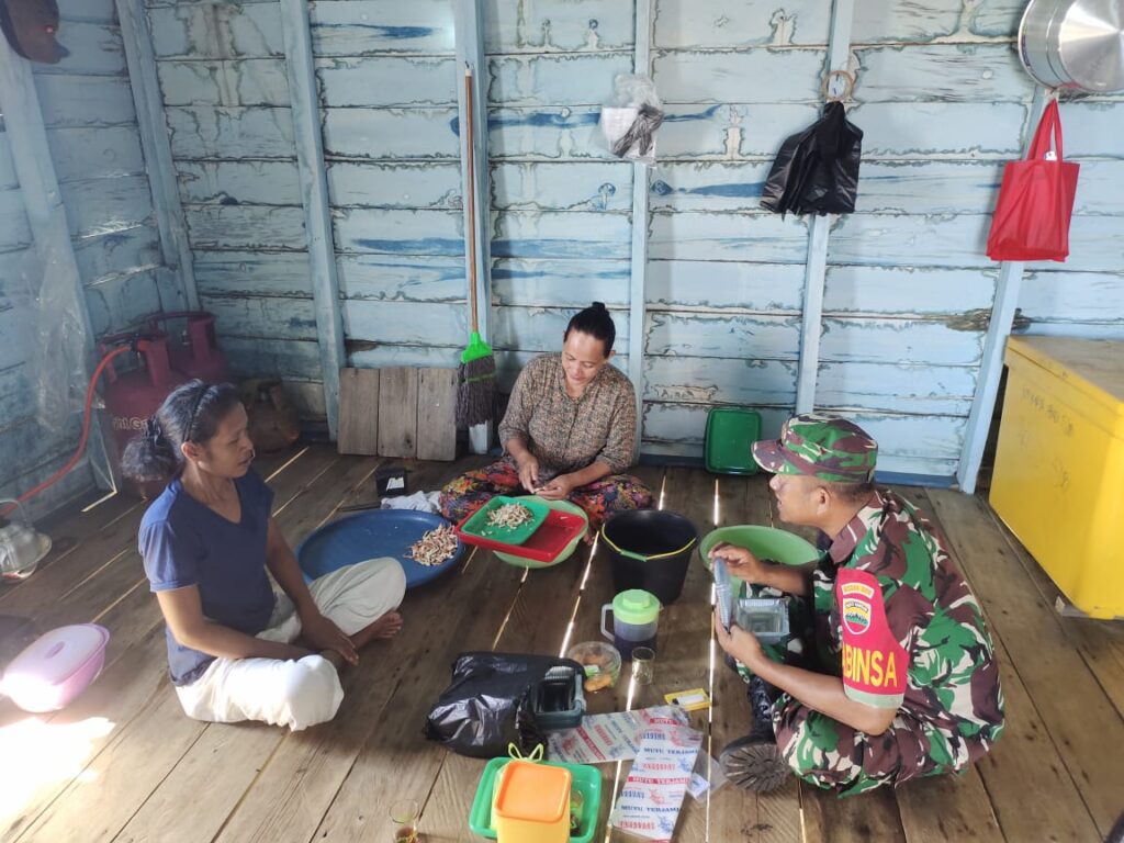 NATUNA – Babinsa Koramil 06/Serasan, pos Ramil Subi, Serka Risdianto melaksanakan kegiatan komsos bersama ibu-ibu warga binaan yang berprofesi sebagai pengupas kepiting di desa Subi, Kecamatan Subi. Kamis, (18/12).