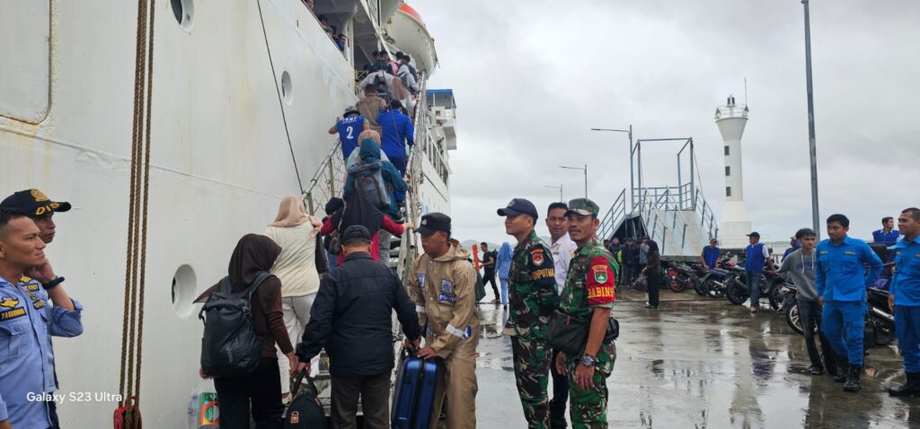 “Kami bersama petugas gabungan melaksanakan pengamanan dan membantu menertibkan penumpang yang turun maupun naik kapal agar tidak terjadi desakan di pelabuhan,” ujarnya.