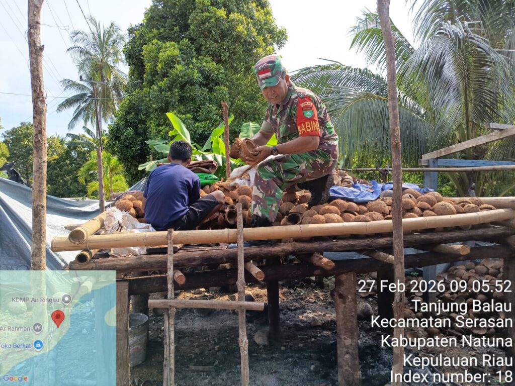 Pada kegiatan tersebut, Serka A. Harahap turut membantu salah satu warga, Bapak Idi, yang baru memulai usaha penampungan kelapa untuk dijadikan kopra salai. Babinsa bersama warga membongkar kelapa yang telah disalai selama sehari untuk diambil dagingnya, kemudian dijemur kembali agar benar-benar kering sebelum dipasarkan.