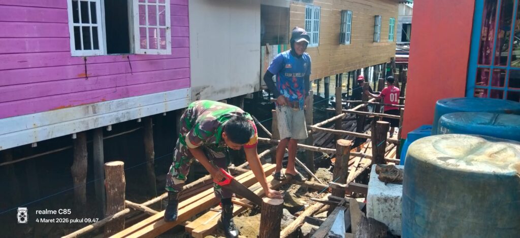 Dalam kesempatan itu, Koptu Suwarno turut berinteraksi langsung dengan warga sekaligus meninjau proses pembangunan pelantar.