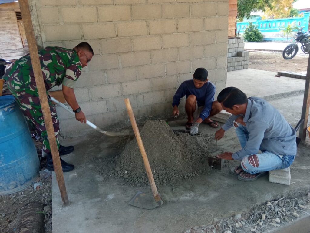 Kegiatan yang dimulai sekitar pukul 08.30 WIB tersebut dilakukan dengan turun langsung membantu warga yang sedang melakukan pekerjaan pembangunan dengan mengaduk semen.