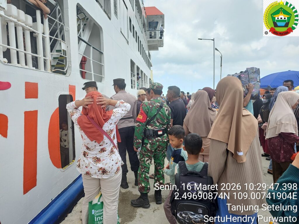 Natuna – Suasana arus mudik Lebaran 2026 di Pelabuhan Serasan, Kecamatan Serasan, tampak ramai dipenuhi warga yang hendak pulang ke kampung halaman. Di tengah padatnya aktivitas penumpang, kehadiran Babinsa Koramil 06/Serasan Kodim 0318/Natuna, Sertu Hendry Purwanto, menjadi sosok yang memberikan rasa aman dan nyaman bagi masyarakat.