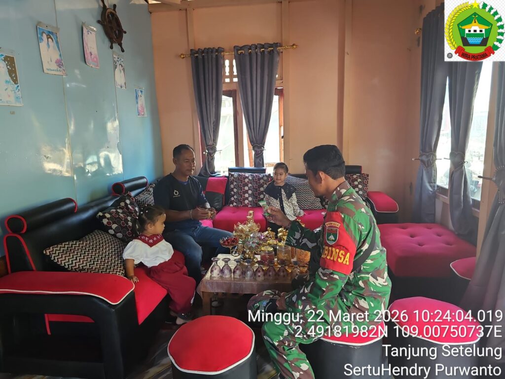 Natuna – Dalam suasana Hari Raya Idul Fitri 1447 H yang penuh kehangatan, Babinsa Koramil 06/Serasan Kodim 0318/Natuna, Sertu Hendry Purwanto melaksanakan kegiatan silaturahmi dan halal bihalal bersama warga binaannya di Desa Tanjung Setelung, Kecamatan Serasan, Minggu (22/3/2026).