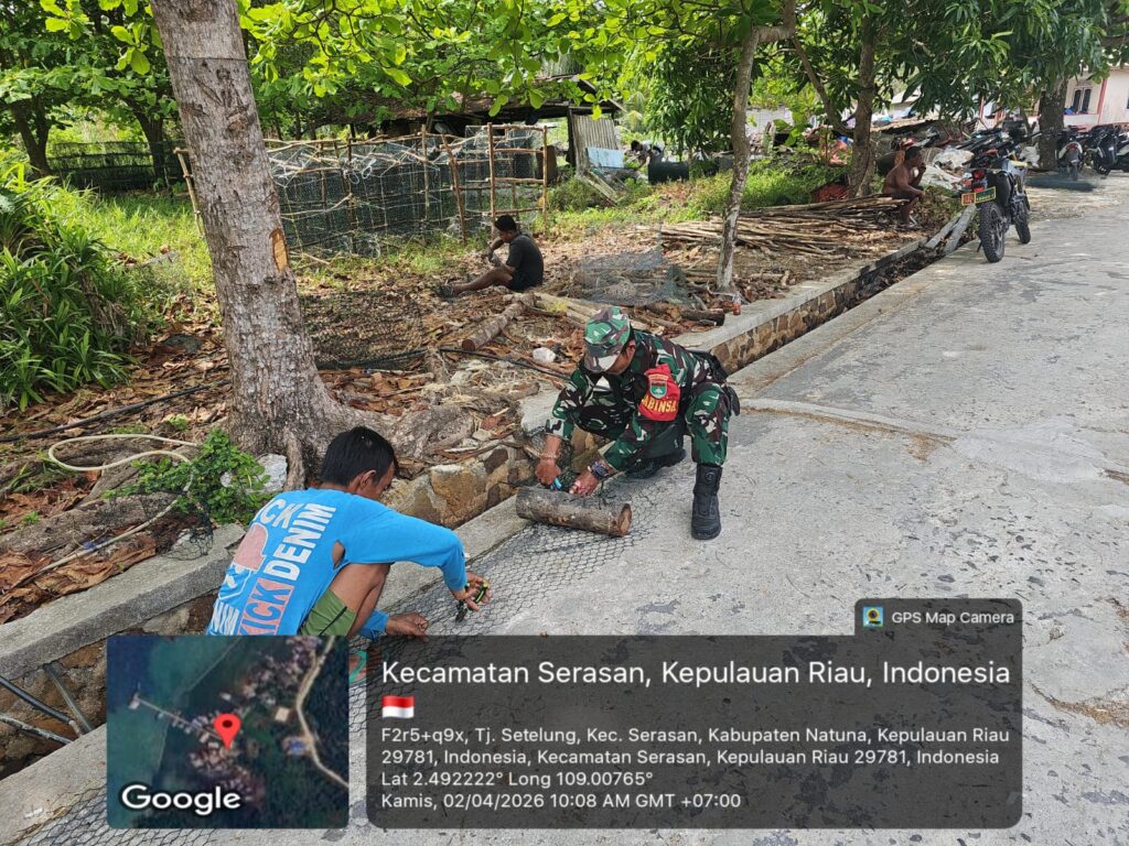 Natuna – Wujud kepedulian terhadap masyarakat binaan kembali ditunjukkan oleh Babinsa Koramil 06/Serasan Kodim 0318/Natuna, Sertu Hendry Purwanto yang melaksanakan komunikasi sosial (komsos) sekaligus membantu warga memperbaiki alat tangkap ikan, Kamis (2/4/2026).