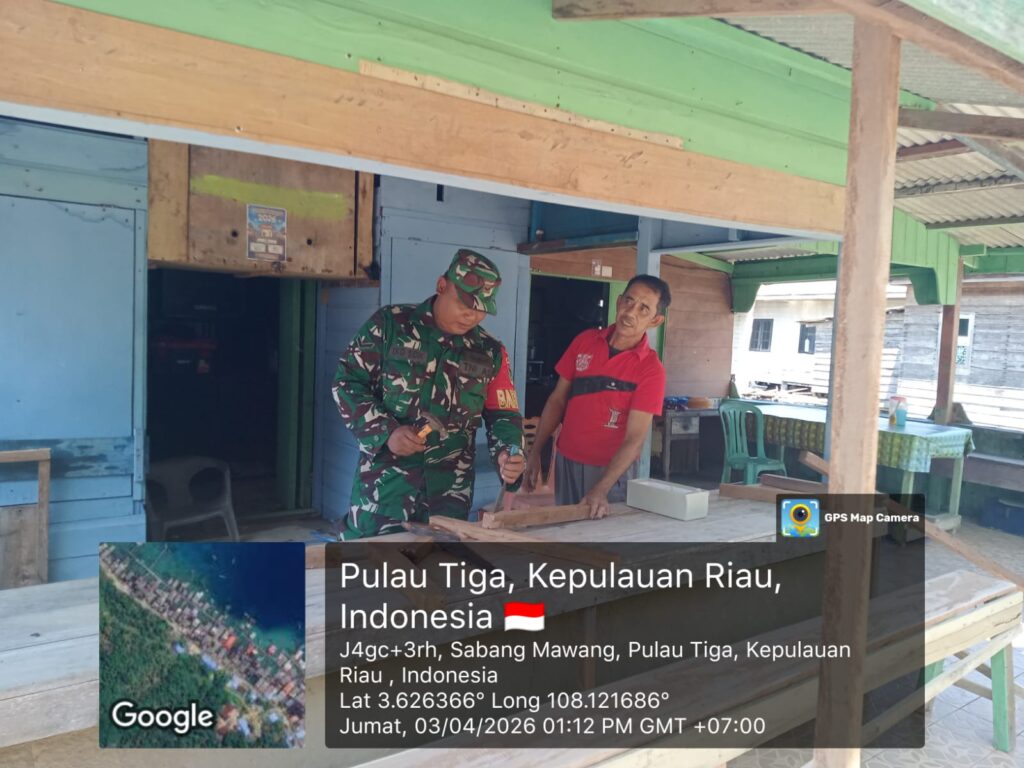NATUNA – Dalam rangka mempererat hubungan dengan masyarakat sekaligus memantau kondisi wilayah binaan, Babinsa Desa Sabang Mawang Barat, Koramil 03/Sedanau Kodim 0318/Natuna, Serda Eko Sidik melaksanakan kegiatan komunikasi sosial (komsos) bersama warga, Jumat (3/4).