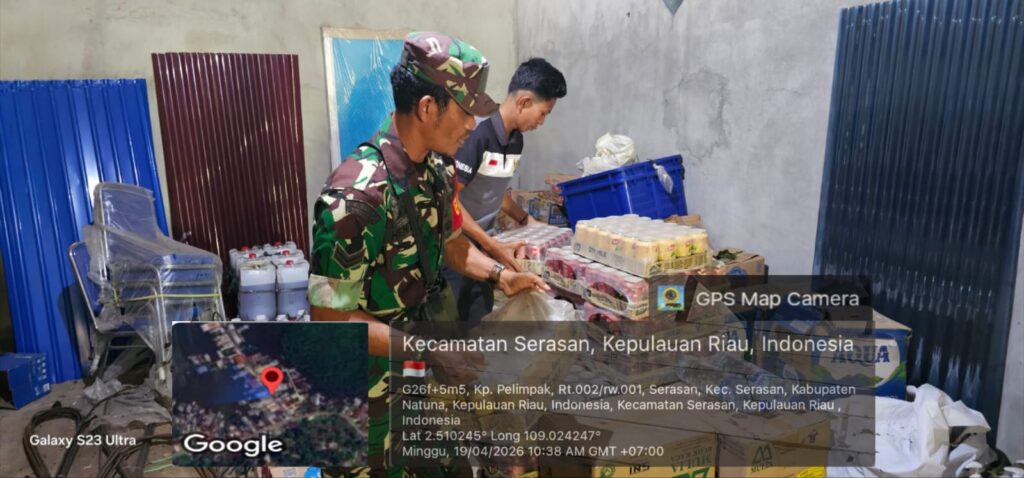 NATUNA – Dalam rangka mempererat hubungan dengan masyarakat, Babinsa Koramil 06/Serasan, Serka Hendry Purwanto, melaksanakan kegiatan komunikasi sosial (komsos) dengan membantu warga di gudang sembako milik Koko Hendy (Serasan Market), yang berlokasi di Kampung Air Raya, Kelurahan Serasan, Kecamatan Serasan, Minggu (19/4/2026).