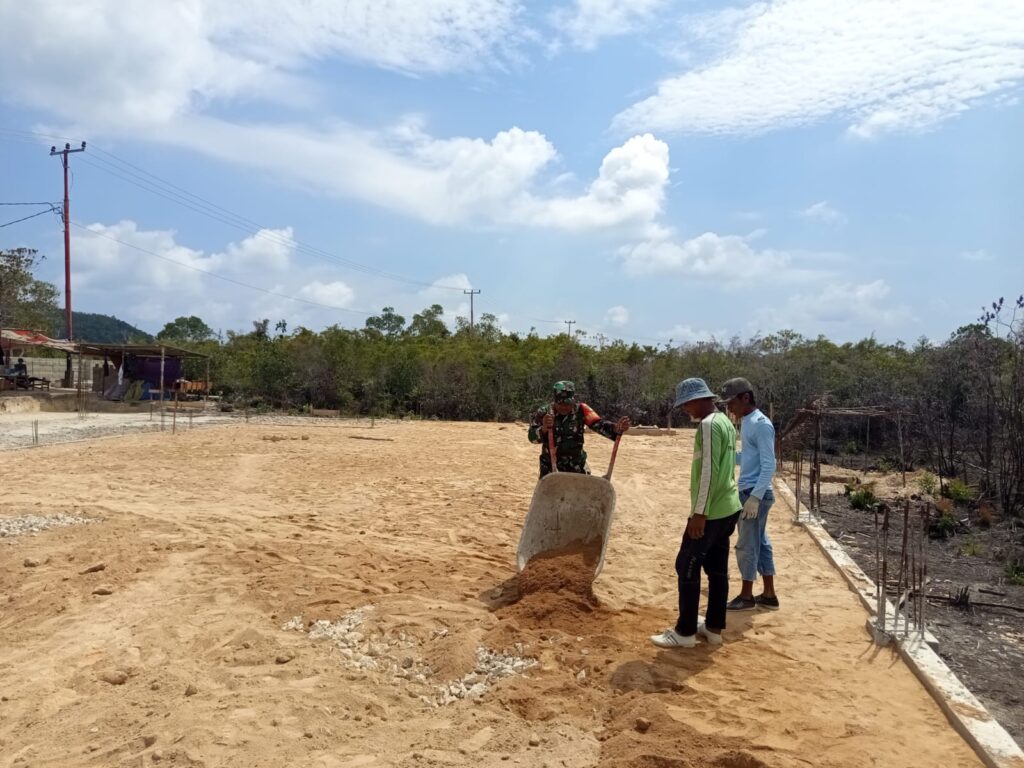 KUTIPAN – Babinsa Koramil 06/Serasan, Sertu Suwarno, menunjukkan komitmennya dalam mendukung pembangunan desa dengan turun langsung ke lapangan melakukan pengawasan sekaligus membantu para pekerja dalam pengolahan lahan pembangunan Koperasi Desa Merah Putih (KDMP) di Desa Jermalik, Kecamatan Serasan, Rabu (22/4).